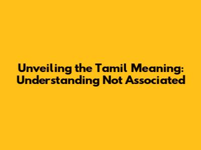 Unveiling The Tamil Meaning: Understanding 'Not Associated'