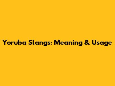 Yoruba Slangs: Meaning & Usage